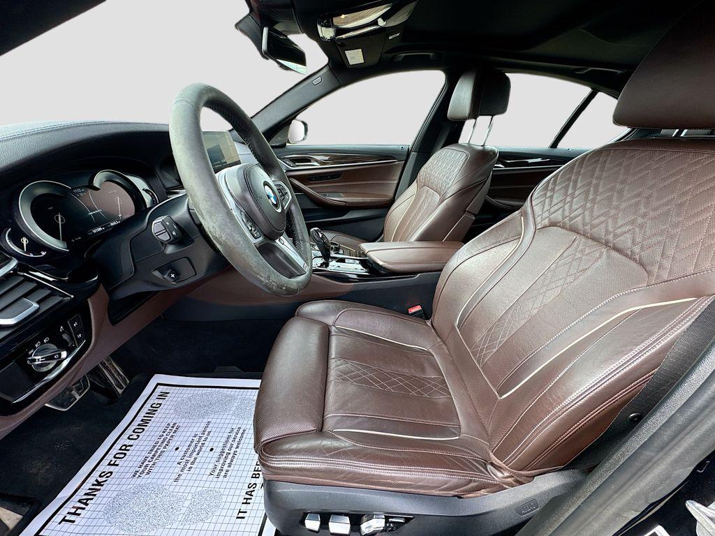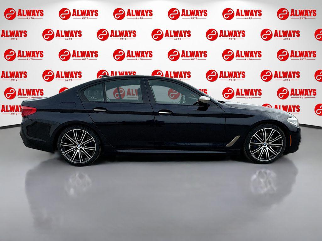 Driving Assistance Package! ($1,700 option when new), Driving Assistance Plus Package! ($1,700 option when new), Executive Package! ($1,200 option when new), Luxury Seating Package! ($1,200 option when new), Cold Weather Package ($800 option when new), Leather trim seats ($1,000 option when new), Power rearshade ($575 option when new), Apple CarPlay, AWD, Mocha Leather, Active Blind Spot Detection, Active Driving Assistant, Active Driving Assistant Plus, Ceramic Controls, Cold Weather Package, Driving Assistance Package, Driving Assistance Plus Package, Executive Package, Front & Rear Heated Seats, Front Massaging Seats, Front Ventilated Seats, Head-Up Display, Heated Steering Wheel, Lane Departure Warning System, Luxury Seating Package, Soft-Close Automatic Doors, WiFi Hotspot, Wireless Charging.Carbon Black Metallic 2018 BMW 5 Series M550i xDrive AWD 8-Speed Automatic 4.4L V8 Turbocharged DOHC 32V LEV3-ULEV125 456hpRecent Arrival!