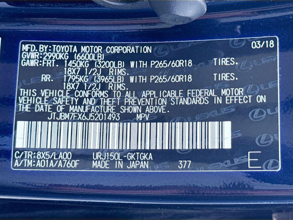 Blue 2018 Lexus GX 460 4WD 6-Speed Automatic with Sequential Shift ECT 4.6L V8 DOHC Dual VVT-i 32VAwards: * 2018 KBB.com 10 Most Awarded Brands * 2018 KBB.com Brand Image Awards