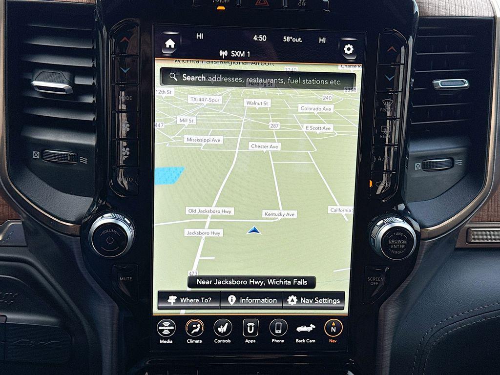 - Longhorn Level 1 Equipment Group: 17 Speaker Harman Kardon Premium Sound; SiriusXM with 360L; Blind Spot and Cross Path Detection; Ramcharger Wireless Charging Pad; Power Deployable Running Boards; Uconnect Radio 12.0 with Navigation