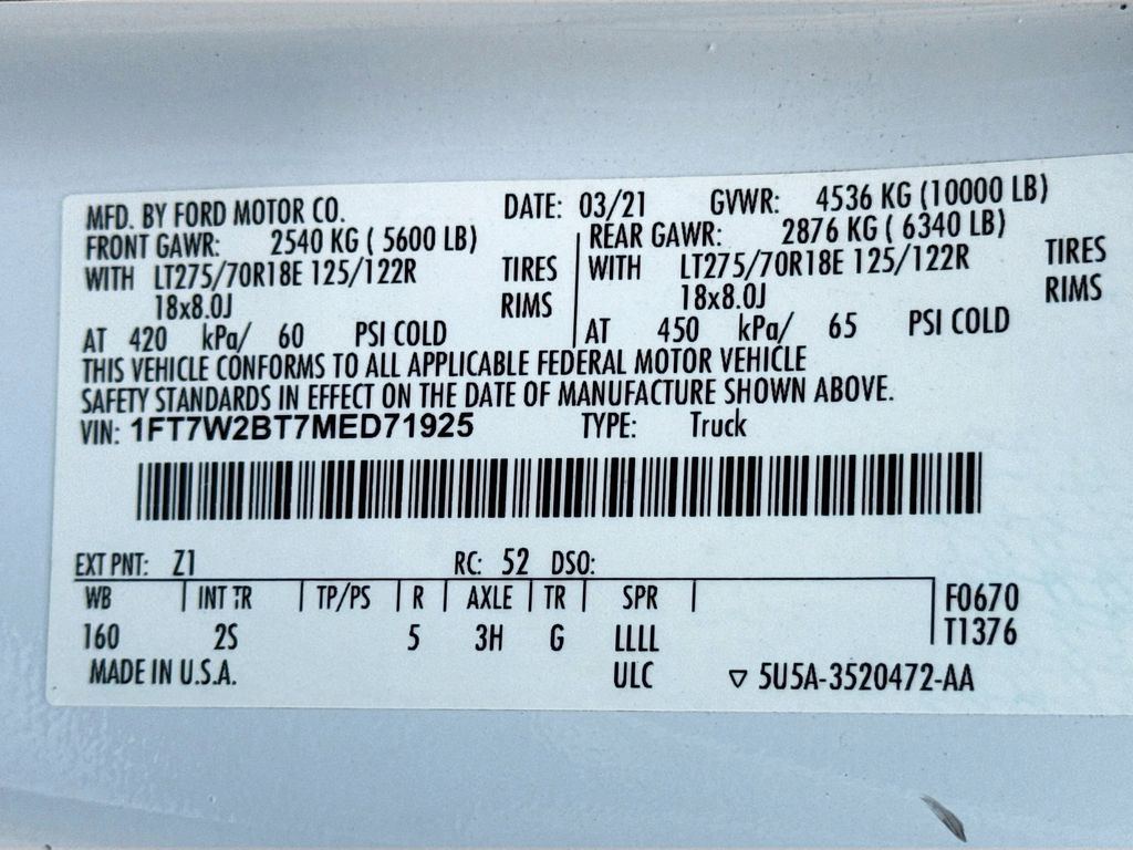6.7L power stroke v8 diesel($10,495 when purchased new), 3.31 electronic-locking axle($390 when new), FX4 off-road package($400 when new), Platform running boards($445 when new), Camper package($180 when new), 4WD, Camper Package, FX4 Off-Road Package, GVWR: 10,000 lb Payload Package, Hill Descent Control, Off-Road Specifically Tuned Shock Absorbers, Order Code 603A, Rear Stabilizer Bar, Unique FX4 Off-Road Box Decal.Oxford White 2021 Ford F-250SD XLT 4WD 10-Speed Automatic Power Stroke 6.7L V8 DI 32V OHV TurbodieselRecent Arrival! Odometer is 1096 miles below market average!