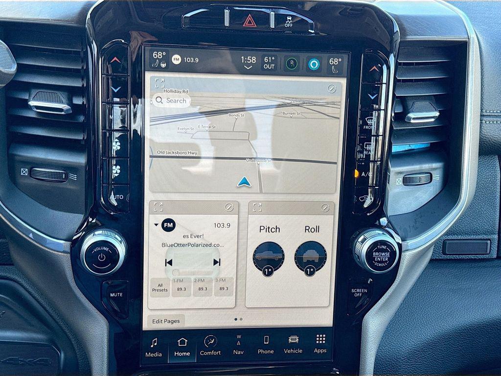 - Laramie Level 1 Equipment Group: Google Android Auto; Rear Window Defroster; Blind Spot and Cross Path Detection; Rain Sensitive Windshield Wipers; LED Tail Lamps; Power Adjustable Pedals with Memory; Rear Power Sliding Window; Integrated Voice Command with Bluetooth; Connectivity - US/Canada; 12"" Touchscreen Display; Auto Power-Folding Mirrors; GPS Navigation; GPS Antenna Input; Exterior Mirrors with Heating Element; Auto Dimming Exterior Mirrors; SiriusXM with 360L; Connected Travel and Traffic Services; Front LED Fog Lamps; LED Reflector Headlamps; Mirror Running Lights; Foam Bottle Insert (door Trim Panel); Alexa Built-In; Apple CarPlay; Power-Adjustable Convex Aux Mirrors; Off-Road Information Pages; Forward and Reverse Utility Lights; Selectable Tire Fill Alert; Trailer Tow Pages; Disassociated Touchscreen Display; HD Radio; Uconnect 5 Navigation with 12.0"" Display Radio; Power Heat Fold Memory Telescopic Mirrors; Exterior Mirrors with Supplemental Signals; Exterior Mirrors Courtesy Lamps; Remote Tailgate Release; Auto High Beam Headlamp Control; Chrome Exterior Mirrors; Center Hub; Exterior Mirrors with Memory; Power Adjust Mirrors; 2nd Row in Floor Storage Bins; Power Telescoping Mirrors; Auto Dimming Exterior Passenger Mirror; Auto Adjust in Reverse Exterior Mirrors; ParkSense Front/rear Park Assist System